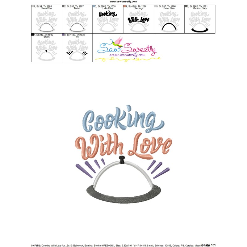 Cooking With Love Kitchen Lettering Exclusive Applique Embroidery Design Pattern For Kitchen Embroidery Projects.