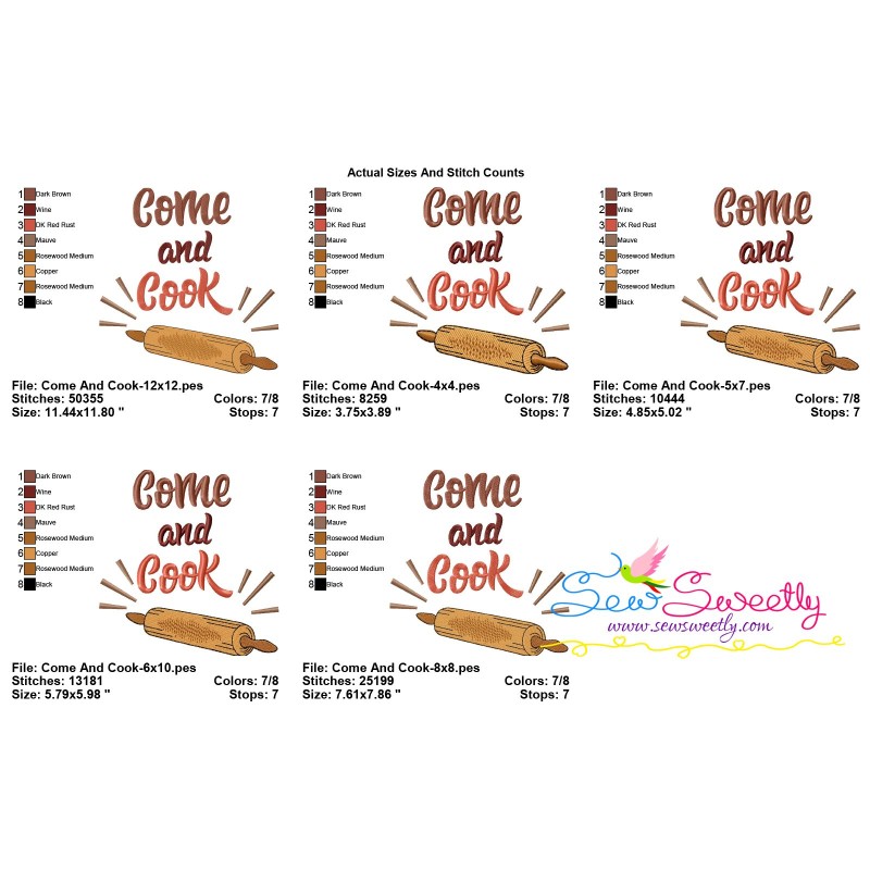 Come And Cook Kitchen Lettering Exclusive Machine Embroidery Design Pattern For Kitchen Embroidery Projects.