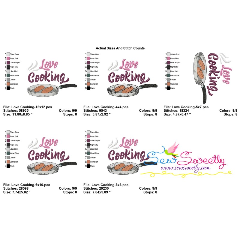 Love Cooking Kitchen Lettering Exclusive Machine Embroidery Design Pattern For Kitchen Embroidery Projects.