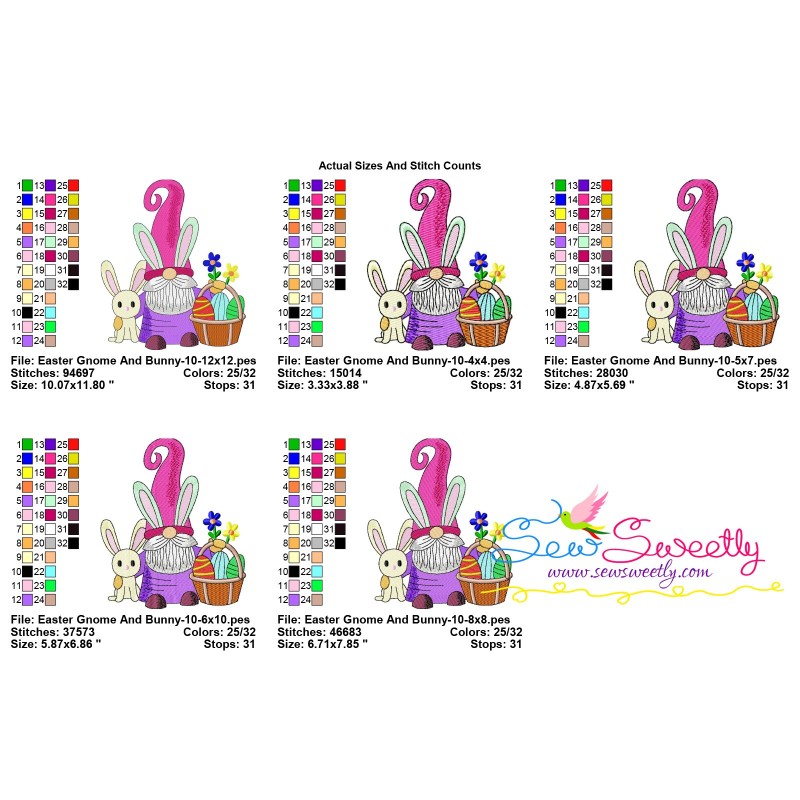 Easter Gnome And Bunny-10 Exclusive Machine Embroidery Design Pattern For Easter Embroidery Projects.