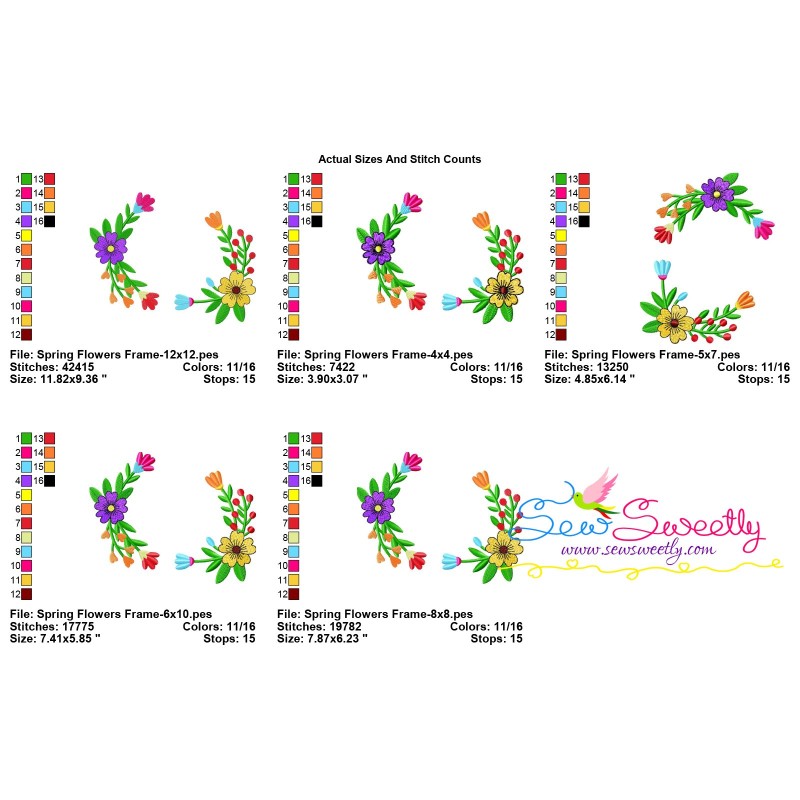 Spring Flowers Frame Embroidery Design Pattern