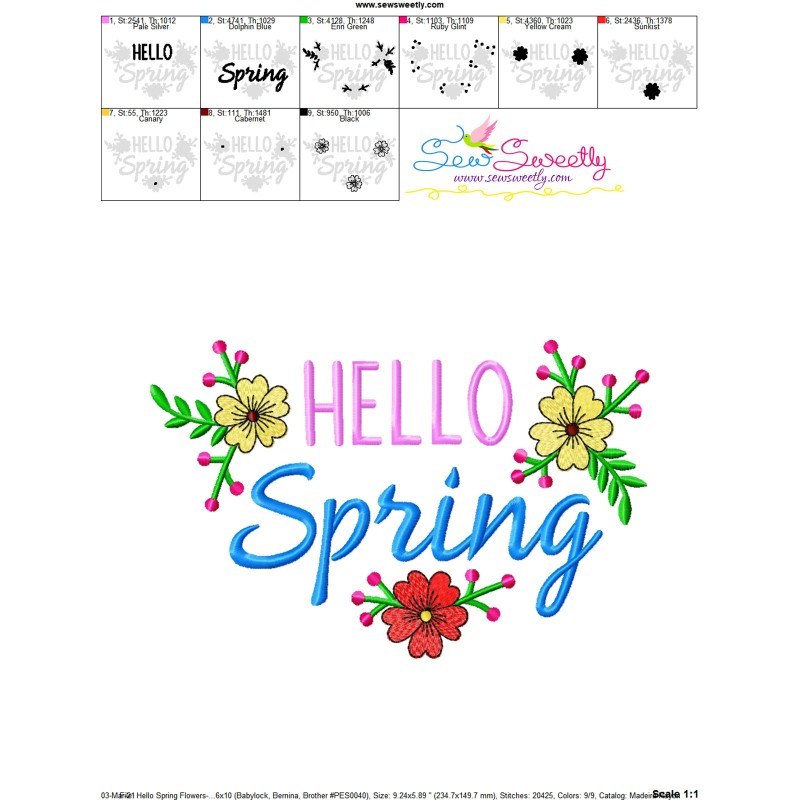 Hello Spring Flowers Lettering Embroidery Design Pattern-1