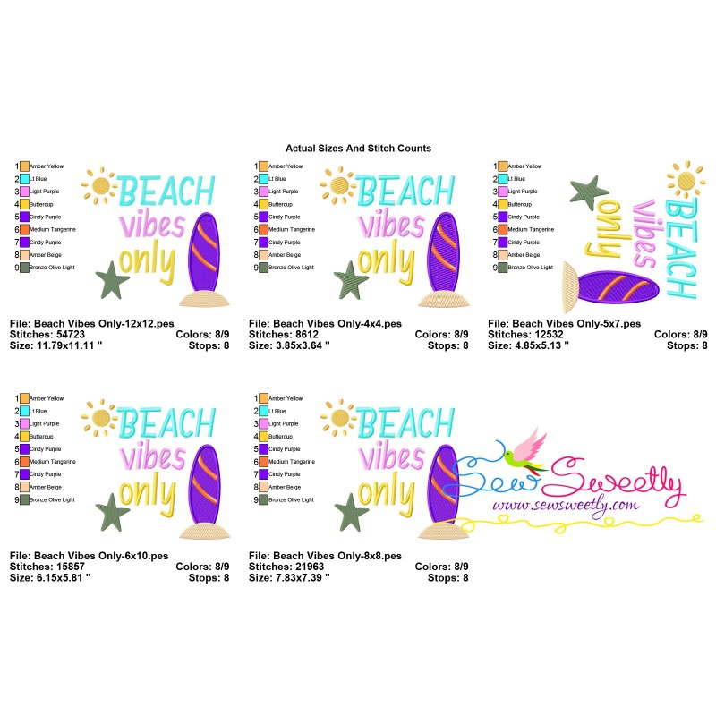 Beach Vibes Only Summer Lettering Exclusive Machine Embroidery Design Pattern For Summer Season Embroidery Projects.