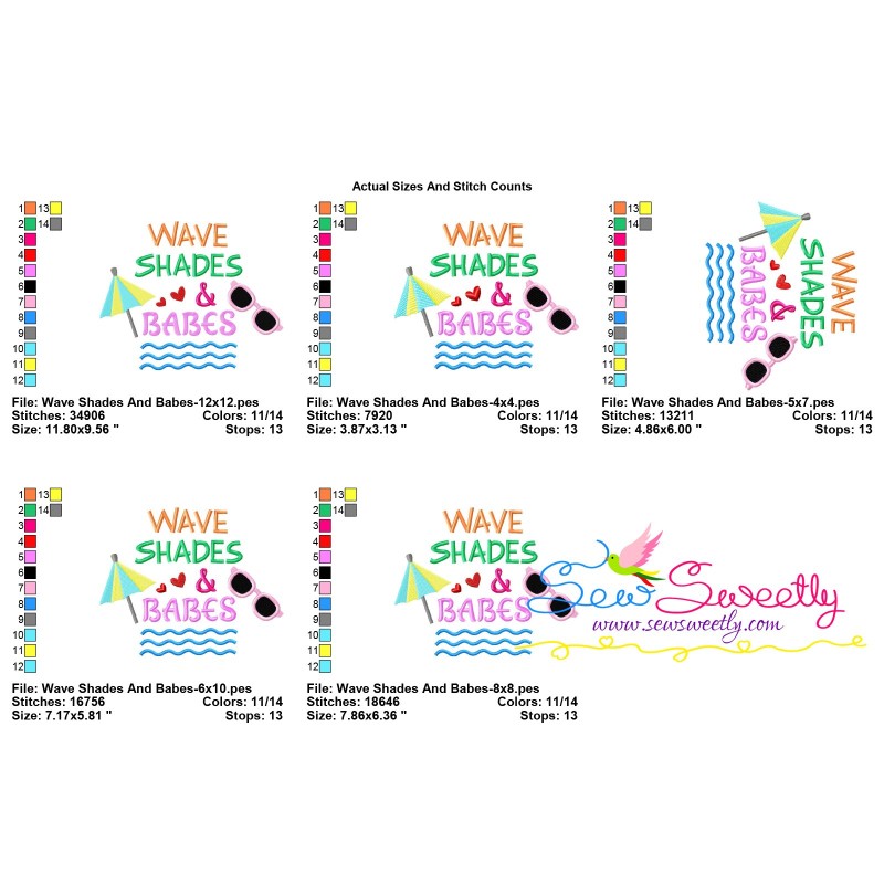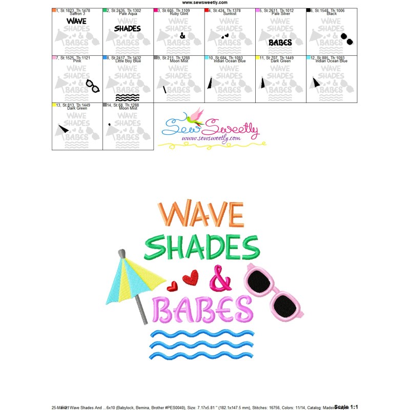 Wave Shades And Babes Summer Lettering Exclusive Machine Embroidery Design Pattern For Summer Season Embroidery Projects.