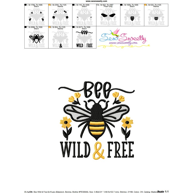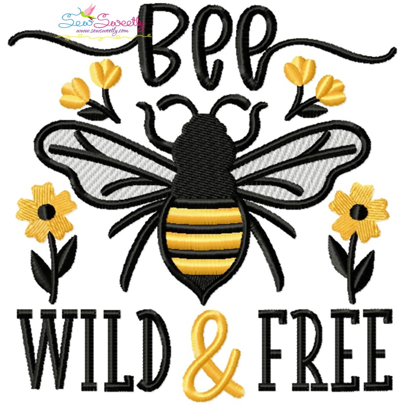 Bee Wild & Free Lettering Embroidery Design Pattern For Computerized Embroidery Machines.