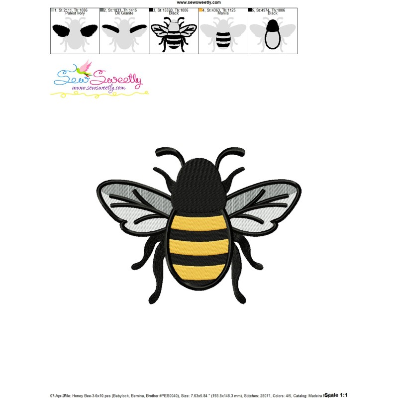Honey Bee-3 Embroidery Design Pattern-1