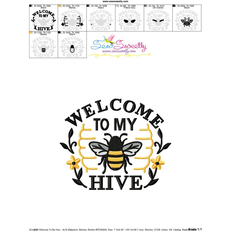 Welcome To My Hive Bee Lettering Machine Embroidery Design Pattern.