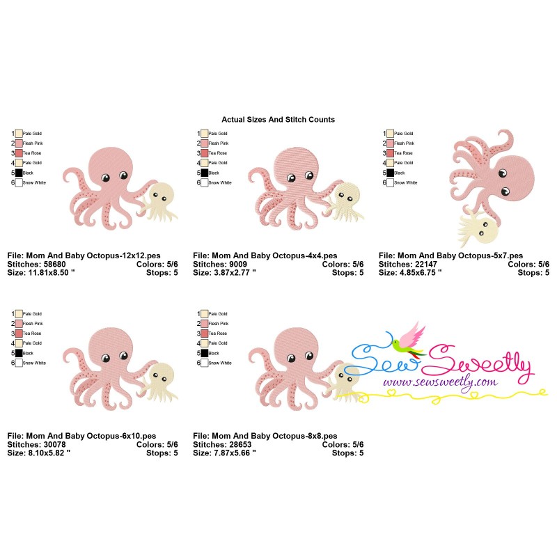 Mom And Baby Octopus Exclusive Machine Embroidery Design Pattern For Mother's Day Embroidery Projects.