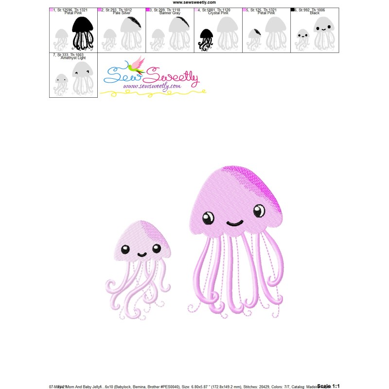 Mom And Baby Jellyfish Exclusive Machine Embroidery Design Pattern For Mother's Day Embroidery Projects.
