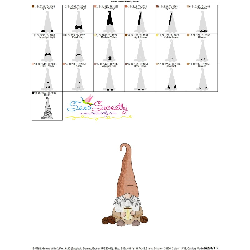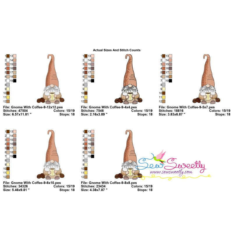 Gnome With Coffee-9 Exclusive Machine Embroidery Design Pattern For Coffee Lovers.