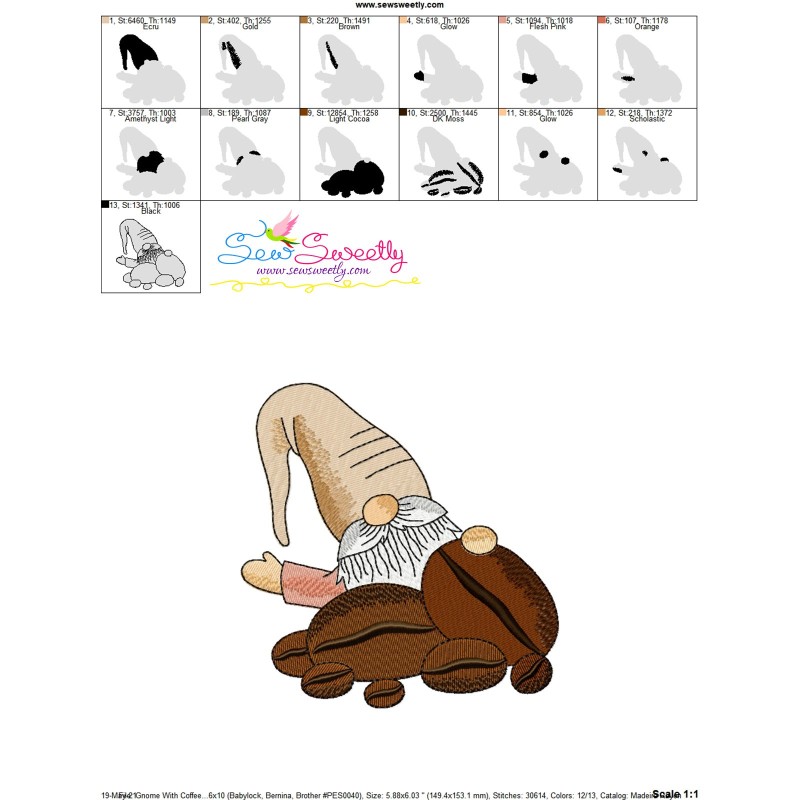 Gnome With Coffee-8 Exclusive Machine Embroidery Design Pattern For Coffee Lovers.
