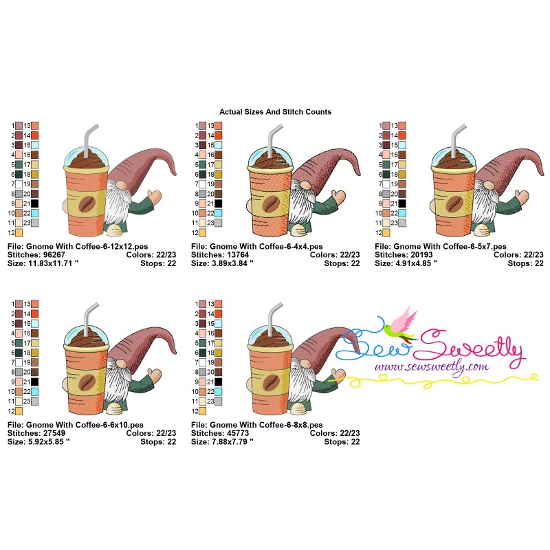 Gnome With Coffee-6 Exclusive Machine Embroidery Design Pattern For Coffee Lovers.