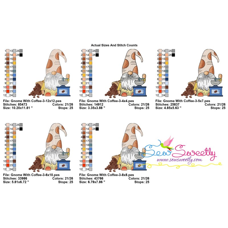 Gnome With Coffee-3 Exclusive Machine Embroidery Design Pattern For Coffee Lovers.