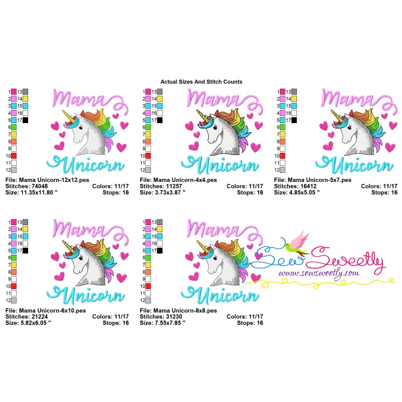 Mama Unicorn Exclusive Machine Embroidery Design Pattern For Mother's Day Embroidery Projects.