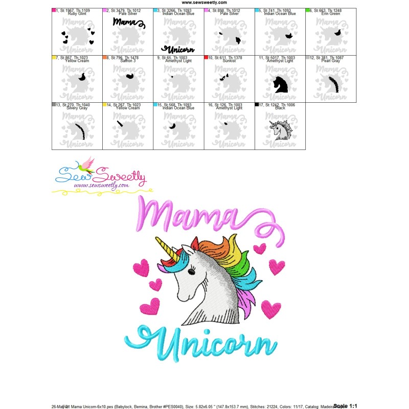 Mama Unicorn Lettering Embroidery Design Pattern-2