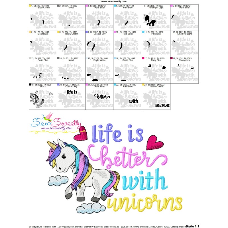 Life Is Better With Unicorns Lettering Embroidery Design Pattern-1