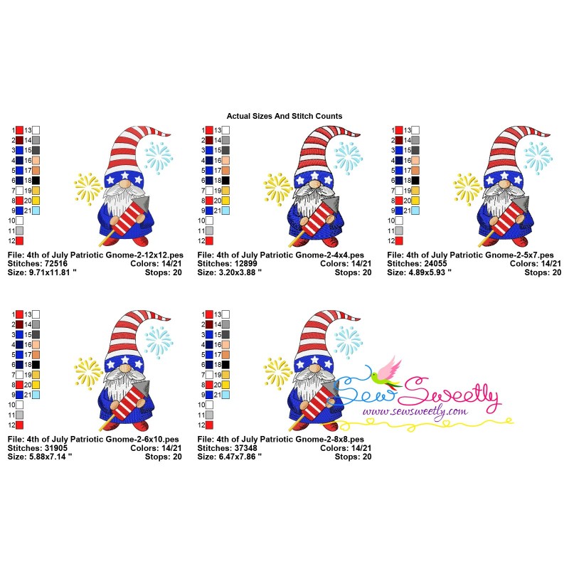 4th of July Patriotic Gnome Rocket Fireworks Embroidery Design Pattern-2