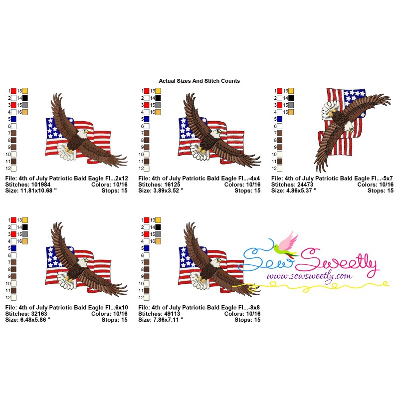 4th of July Patriotic Bald Eagle Flag-6 Embroidery Design Pattern-1