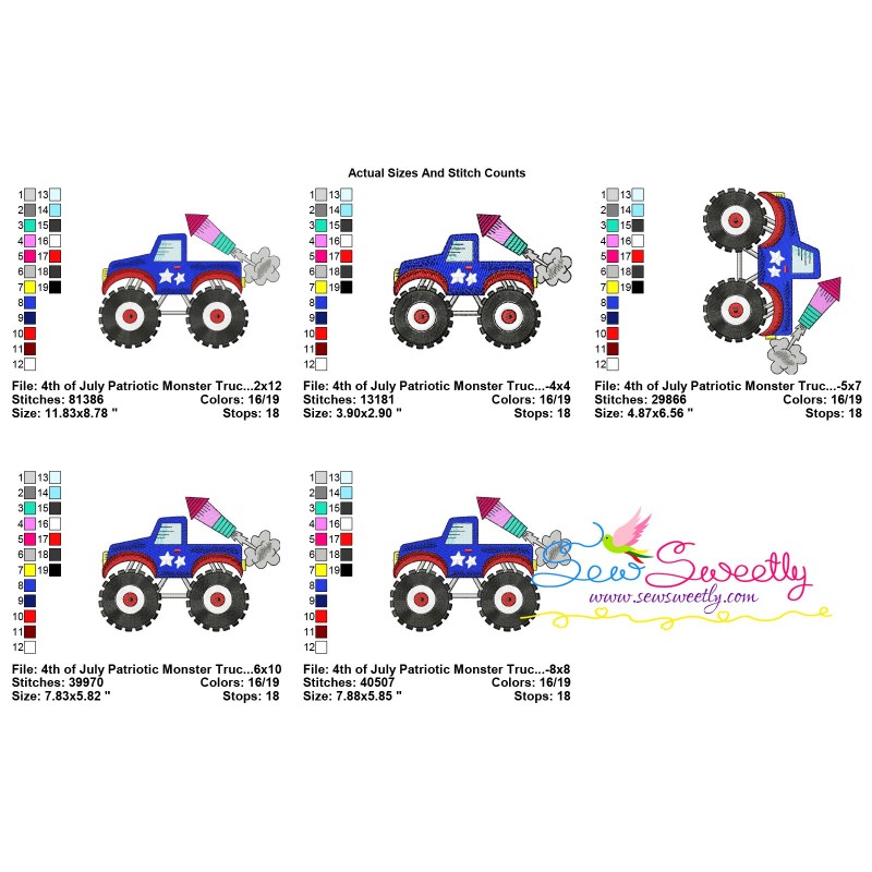 4th of July Patriotic Monster Truck-2 Embroidery Design Pattern-3