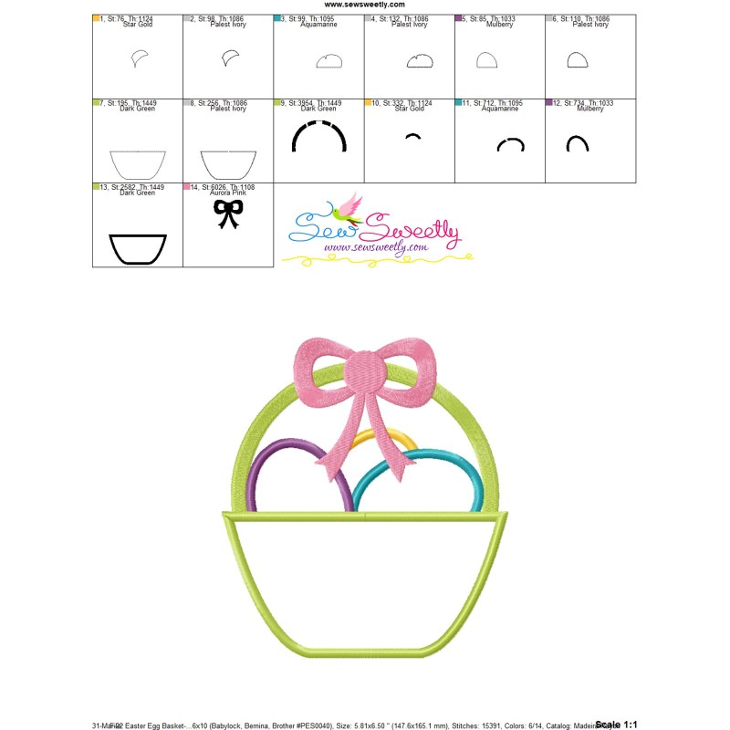 Instant Download Easter Egg Basket Applique Design Pattern. Quality Digitizing Guaranteed.
