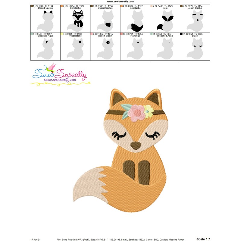 Boho Fox Machine Embroidery Design Pattern For Boho Embroidery Projects.