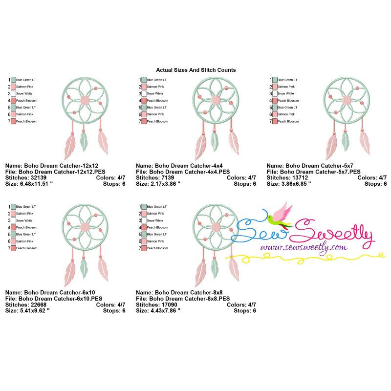 Boho Dream Catcher Machine Embroidery Design Pattern For Boho Embroidery Projects.