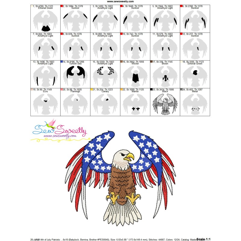 4th of July Patriotic Bald Eagle Flag-8 Embroidery Design Pattern-1