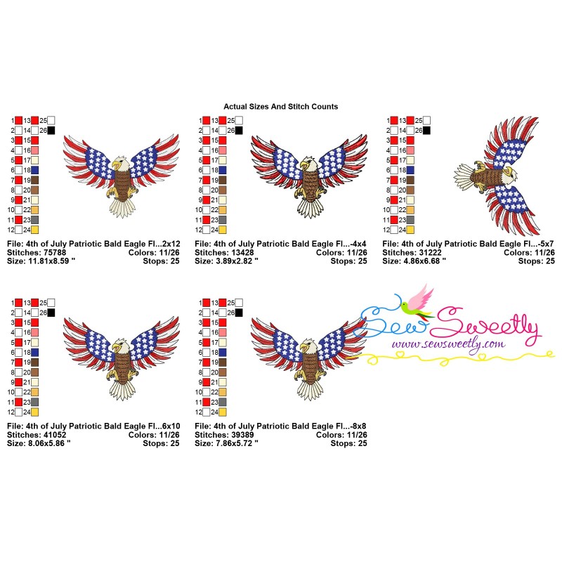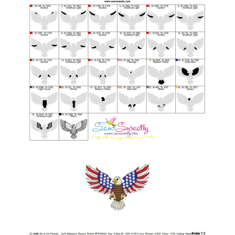 4th of July Patriotic Bald Eagle Flag-7 Embroidery Design Pattern-1
