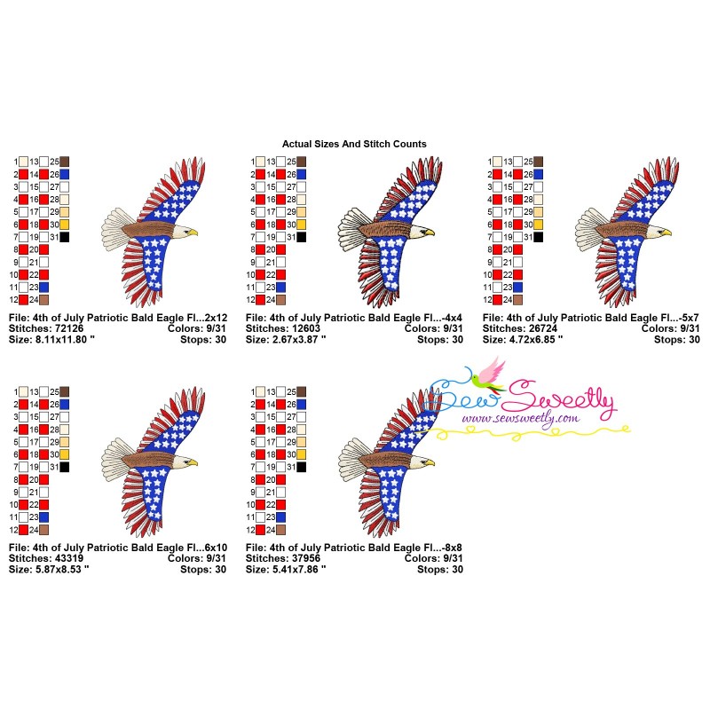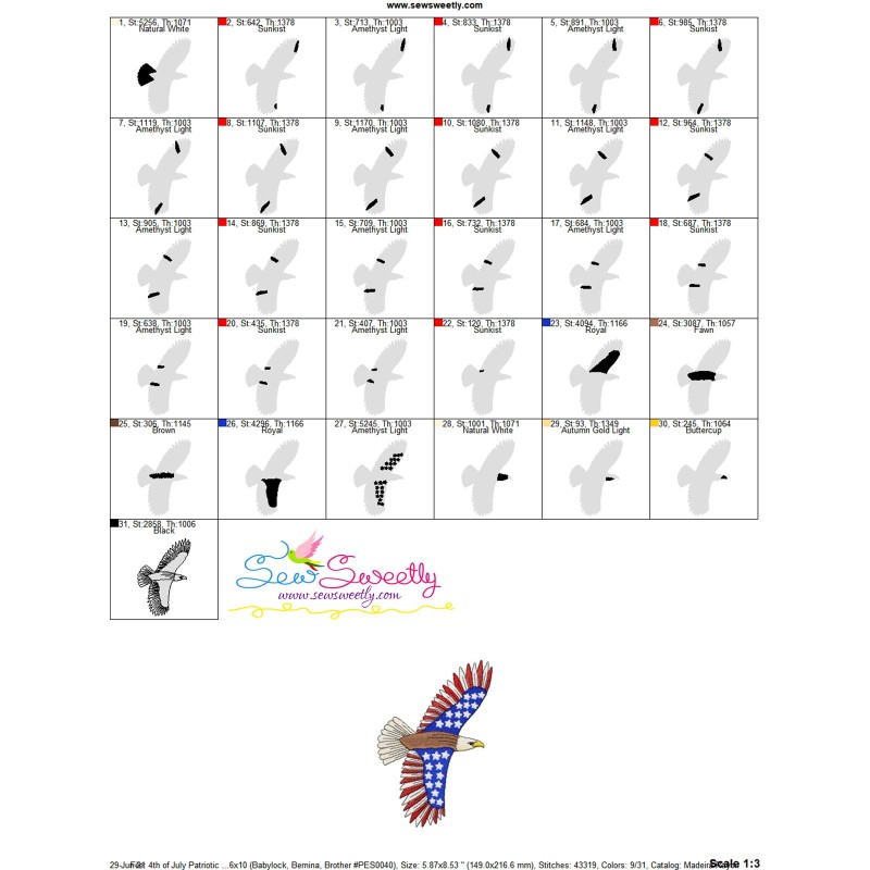 4th of July Patriotic Bald Eagle Flag-6 Embroidery Design Pattern-1