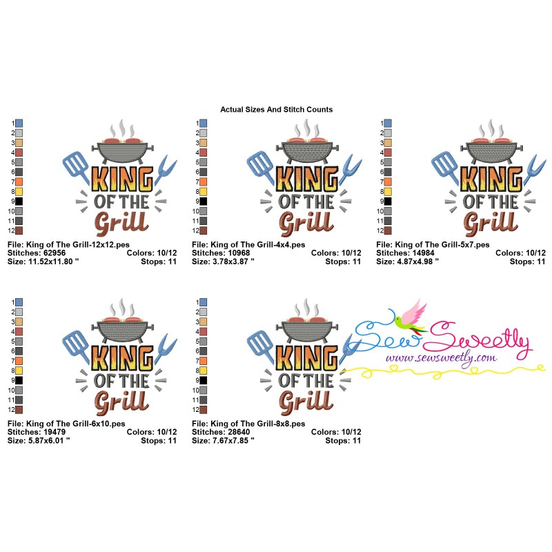 King of The Grill Barbeque Lettering Exclusive Machine Embroidery Design Pattern For Barbeque, Grilling, And Kitchen Embroidery Projects.