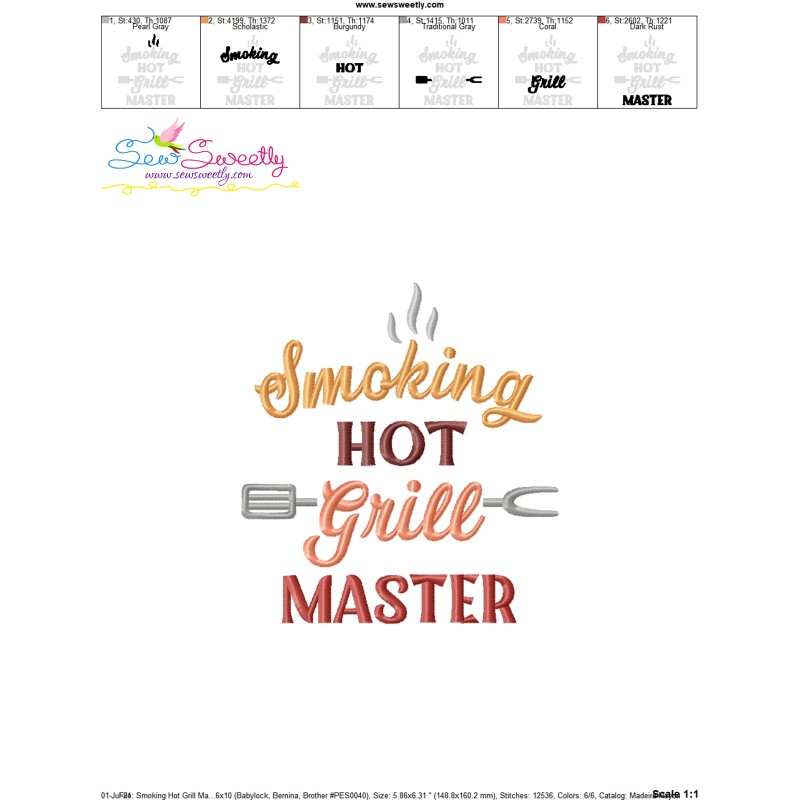 Smoking Hot Grill Master Barbeque Lettering Embroidery Design Pattern