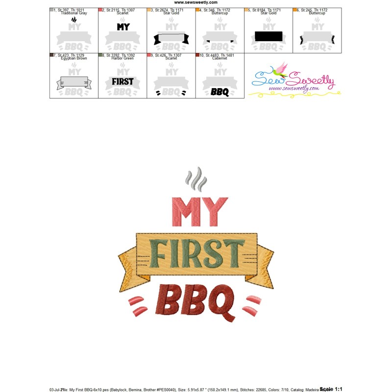 My First (1st) BBQ Barbeque Lettering Embroidery Design Pattern-1
