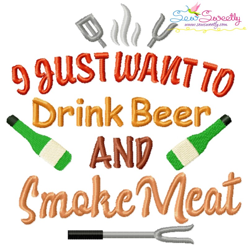 I Just Want To Drink Beer And Smoke Meat Barbeque Lettering Embroidery Design Pattern