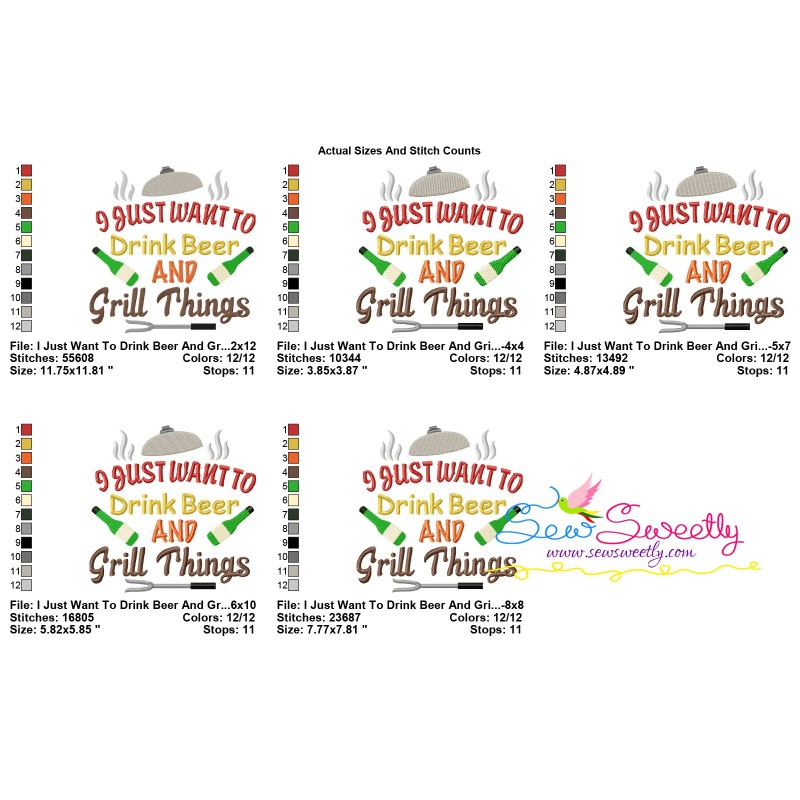 I Just Want To Drink Beer And Grill Things Barbeque Lettering Exclusive Machine Embroidery Design Pattern For Barbeque, Grilling, And Kitchen Embroidery Projects.