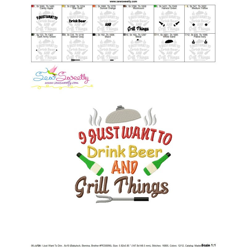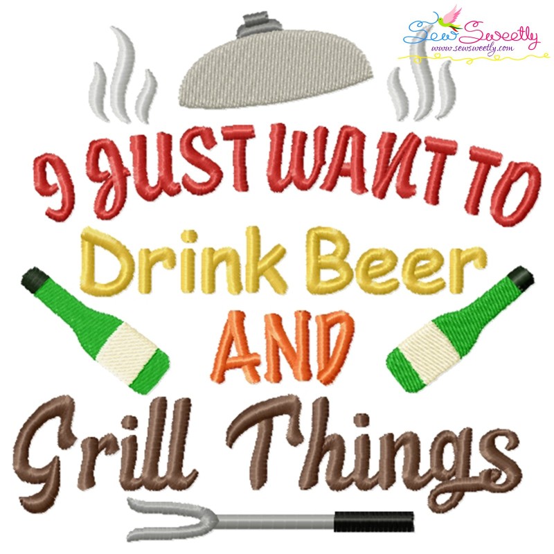 I Just Want To Drink Beer And Grill Things Barbeque Lettering Embroidery Design Pattern
