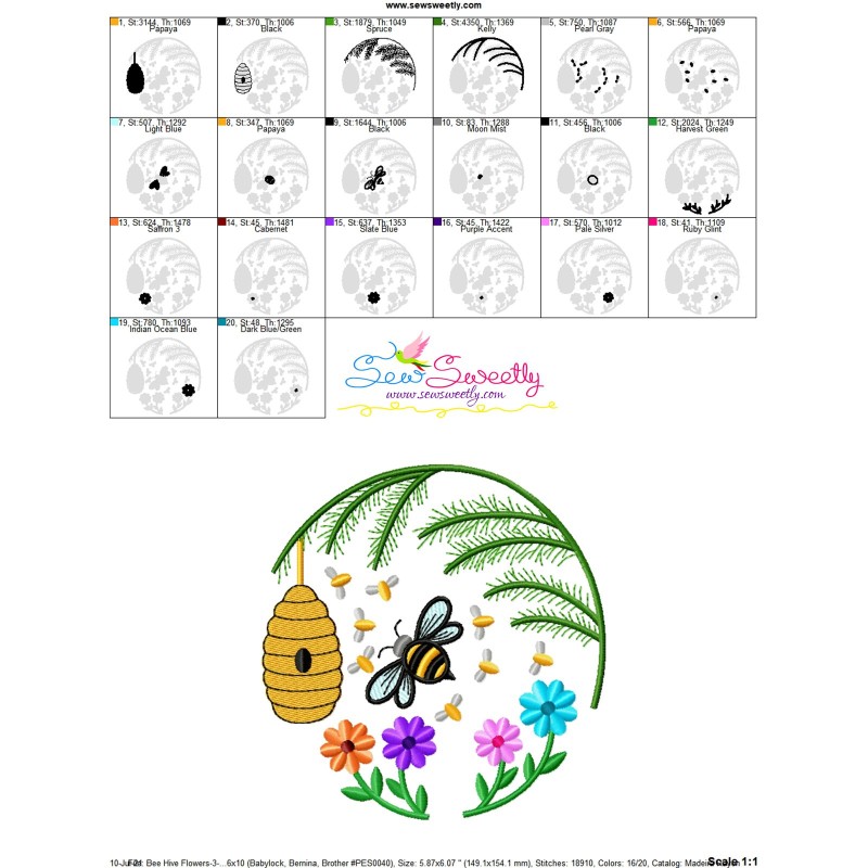 Honey Bee Hive Flowers-3 Embroidery Design Pattern For Pillow