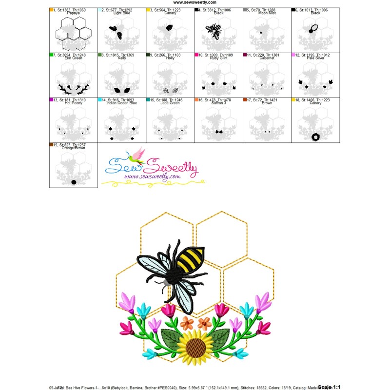 Honey Bee Hive Flowers-2 Embroidery Design...