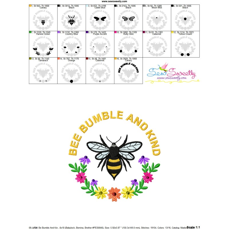 Be Bumble And Kind Frame Bee Lettering Exclusive Embroidery Design Pattern Pattern, Best For Pillow Covers And Quilt Blocks.