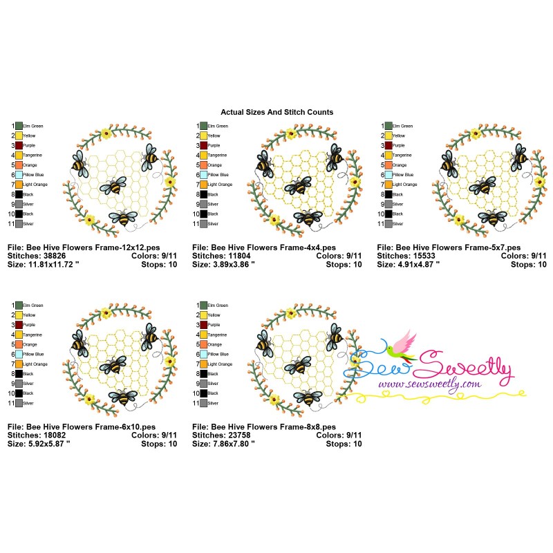 Honey Bee Hive Flowers-3 Embroidery Design...