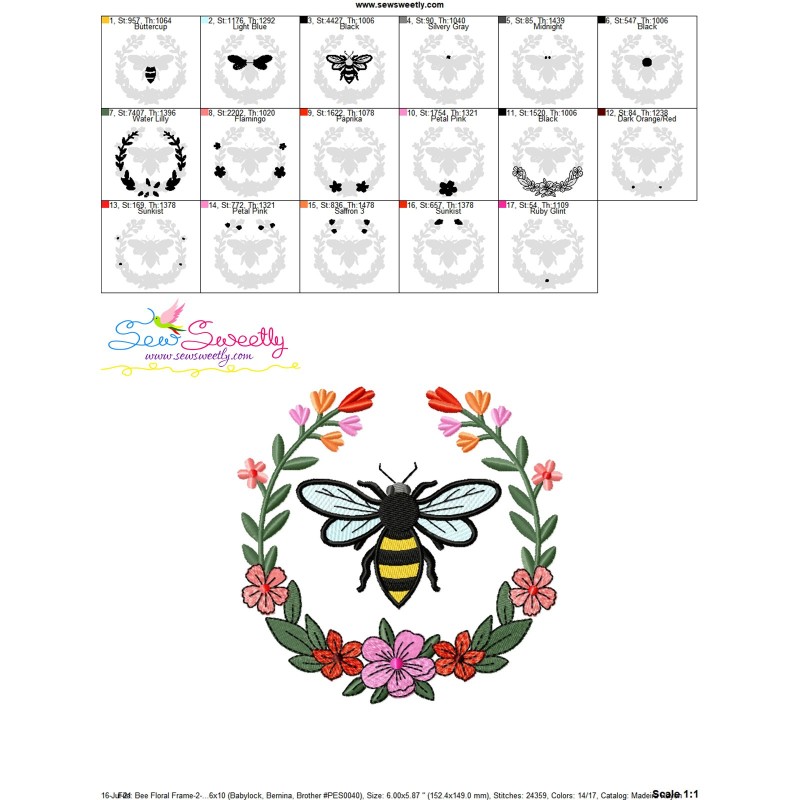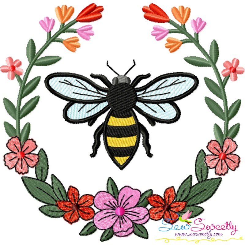 Bee Floral Frame-4 Embroidery Design Pattern...