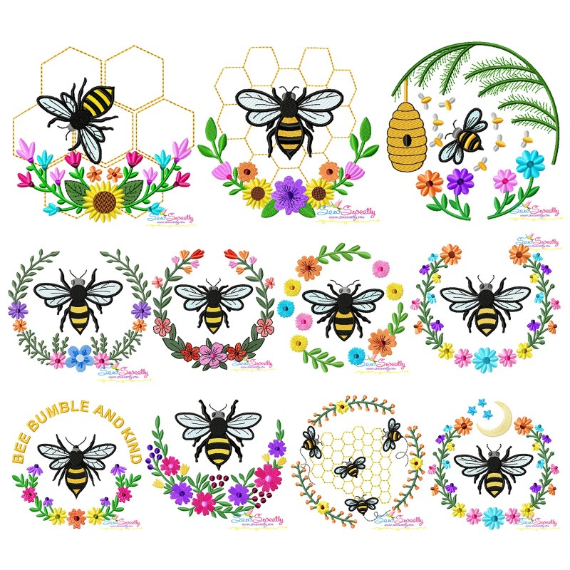 This Embroidery Design Bundle Includes 11 Beautiful Bees Floral Frames Machine Embroidery Designs (Including One Free Design)
