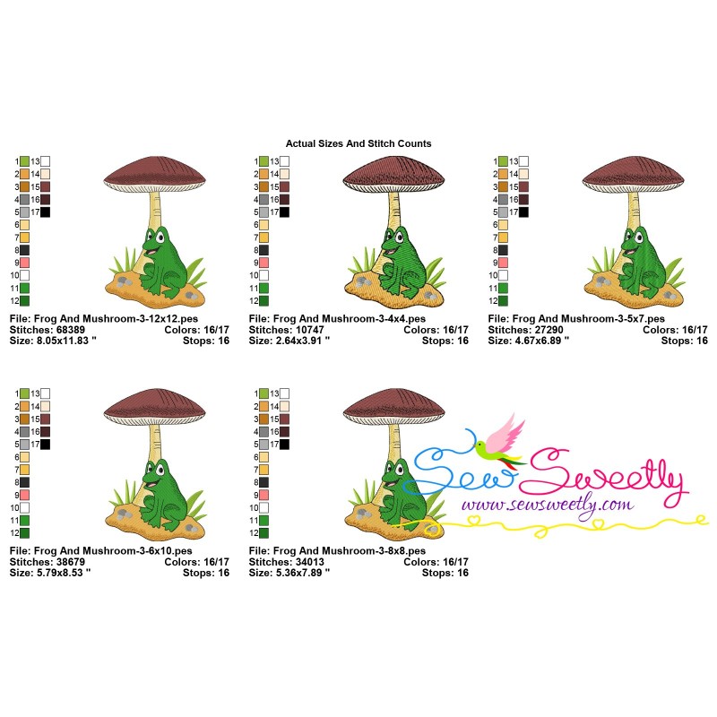 Frog And Mushroom-3 Machine Embroidery Design Pattern For Computerised Embroidery Machines.