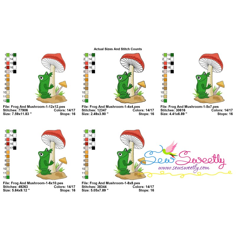 Frog And Mushroom-1 Machine Embroidery Design Pattern For Computerised Embroidery Machines.