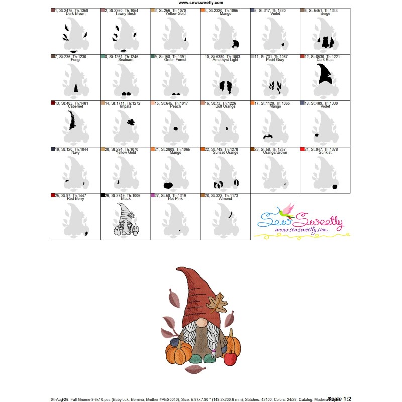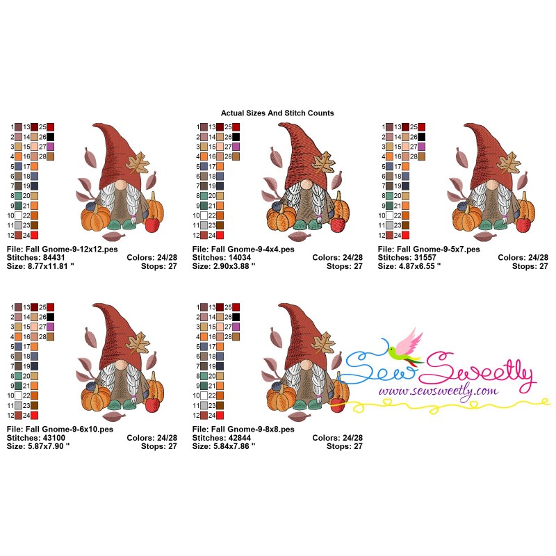 Fall Gnome-9 Exclusive Machine Embroidery Design Pattern For Fall/Autumn Embroidery Projects.