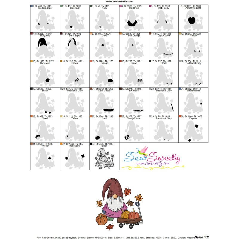 Fall Gnome-2 Exclusive Machine Embroidery Design Pattern For Fall/Autumn Embroidery Projects.
