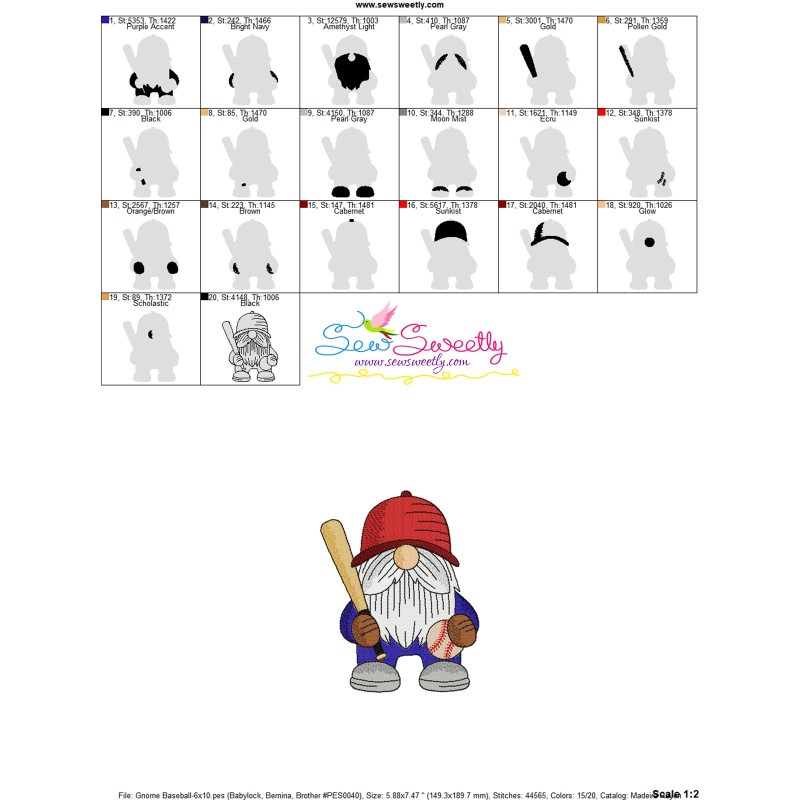 Sports Gnome Baseball Boy Exclusive Machine Embroidery Design Pattern For Sports Embroidery Projects.