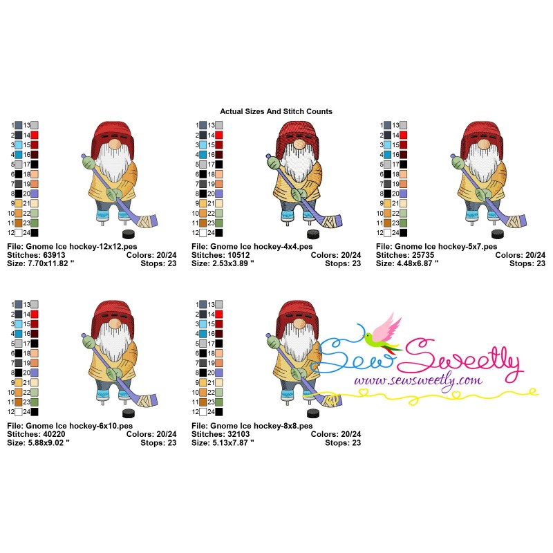 Sports Gnome Ice Hockey Boy Embroidery Design Pattern-1