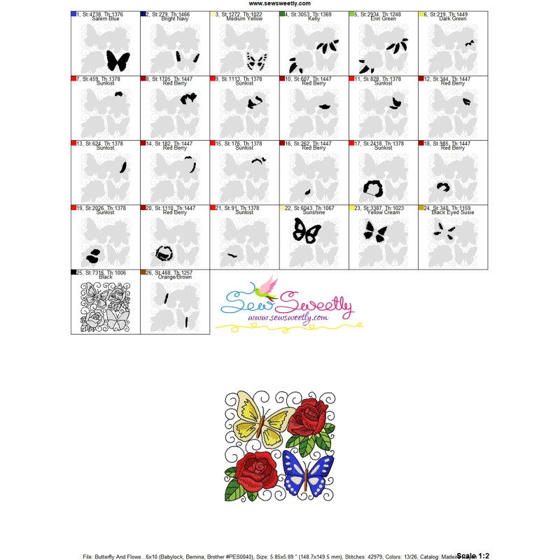 Butterfly And Flowers Quilt Block-5 Machine Embroidery Design Pattern For Quilting Embroidery Projects.