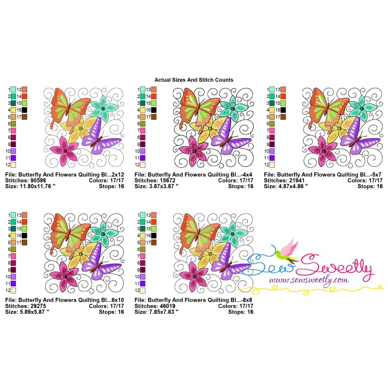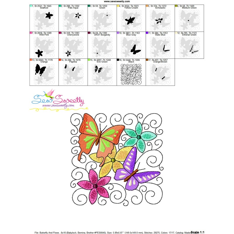Butterfly And Flowers Quilt Block-2 Machine Embroidery Design Pattern For Quilting Embroidery Projects.