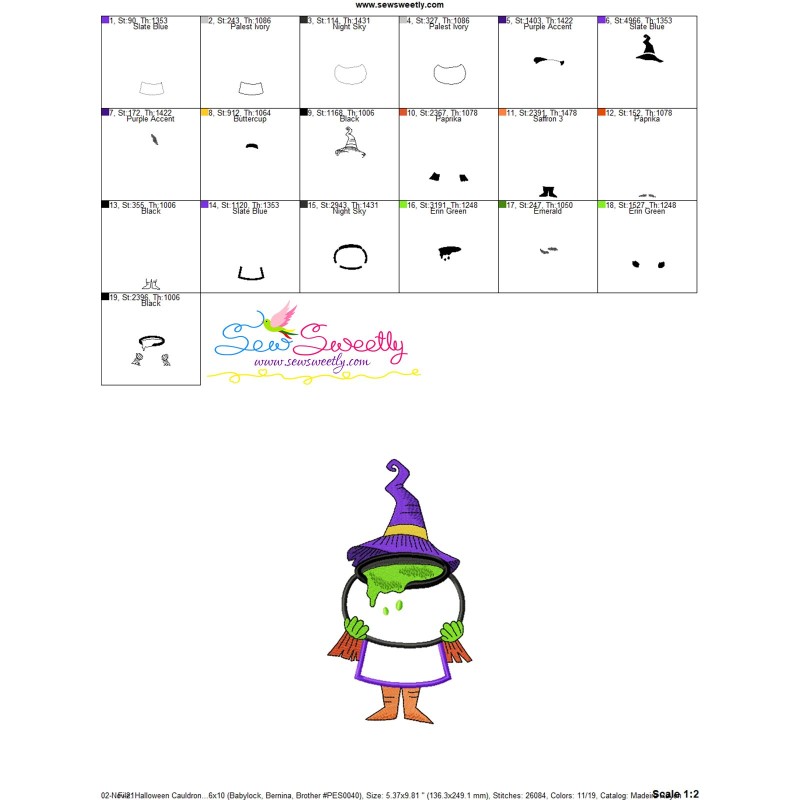 Halloween Cauldron And Witch Exclusive Applique Embroidery Design Pattern For Halloween Embroidery Projects.